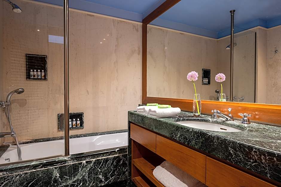 Offering views over the garden from its balcony, this air-conditioned and elegantly decorated room comes with a flat-screen, satellite TV. A mini-bar and a marble bathroom with TV, bathrobes and slippers are included.